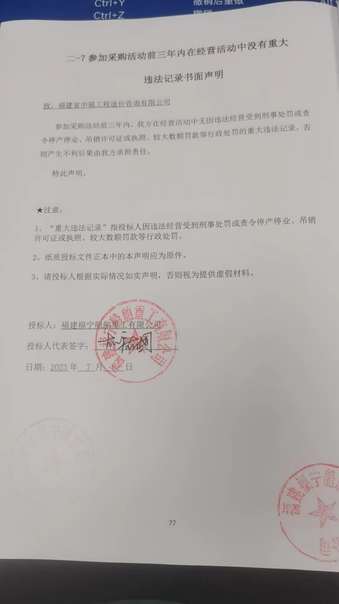 “寧德市建港海洋裝備有限公司”投標(biāo)文件中未提供對近三年無行賄犯罪記錄的聲明函以及未提供招標(biāo)文件要求的“具備履行合同所必需設(shè)備和專業(yè)技術(shù)能力的證明材料”中的經(jīng)營場所的場地證明材料,資格審查不通過;其余投標(biāo)人資格性及符合性均通過審查。