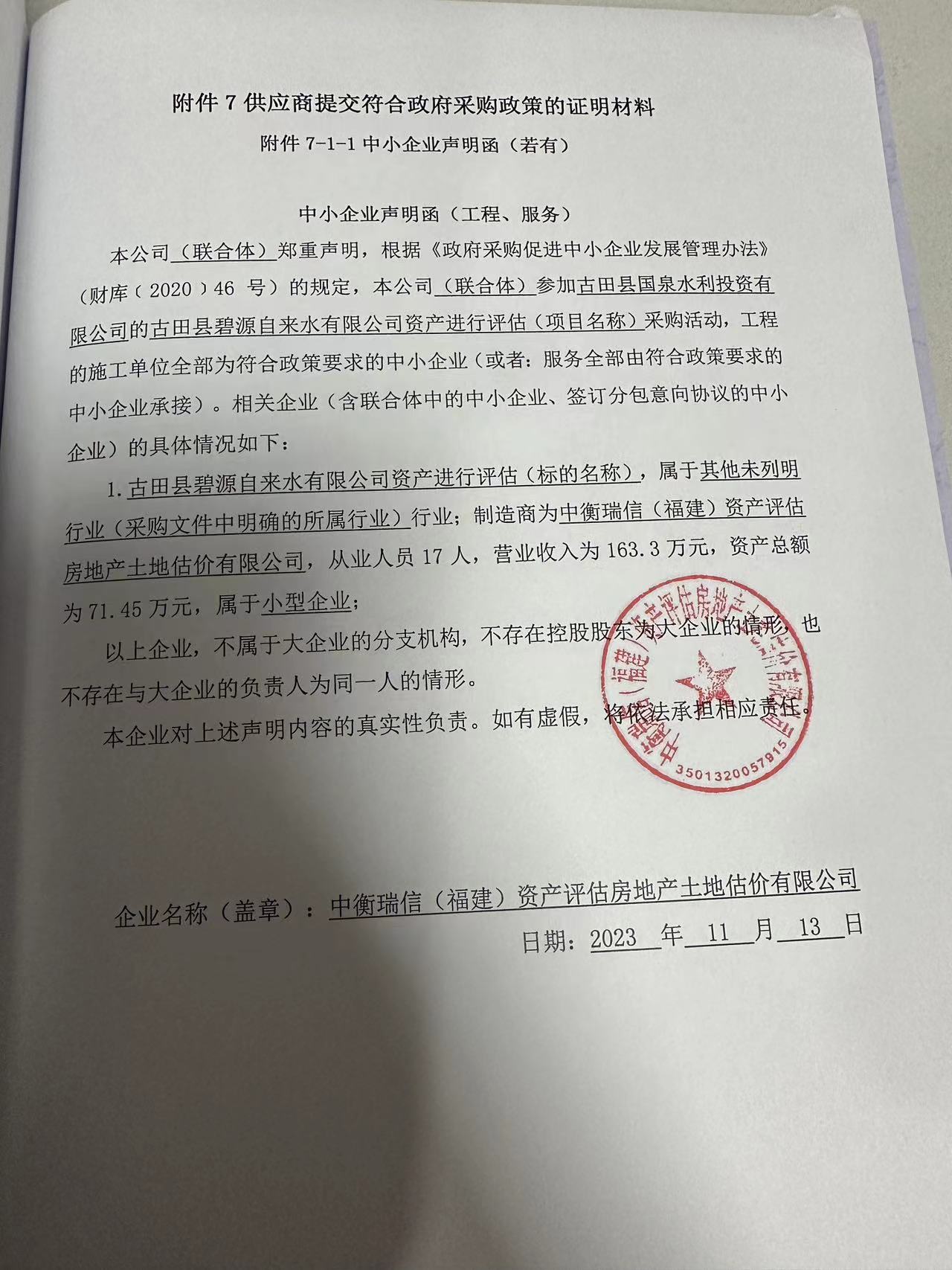 古田縣碧源自來水有限公司資產(chǎn)進(jìn)行評估 |
