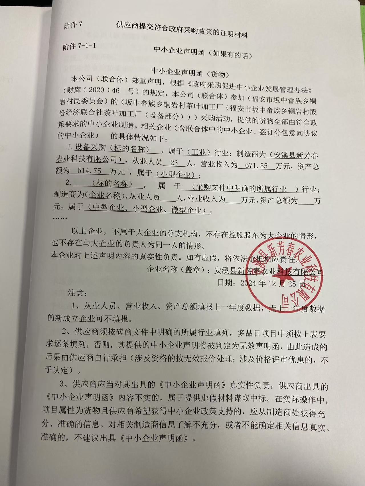 二、項目名稱:坂中畬族鄉(xiāng)銅巖村茶葉加工廠(福安市坂中畬族鄉(xiāng)銅巖村股份經(jīng)濟聯(lián)合社茶葉加工廠(設備部分))