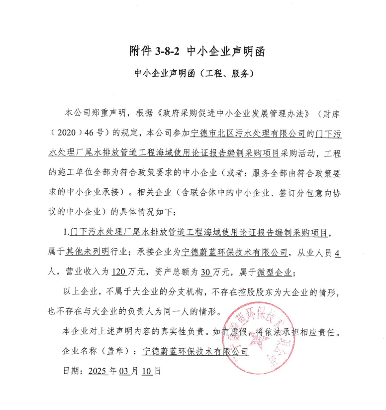 門下污水處理廠尾水排放管道工程海域使用論證報告編制采購項目 |