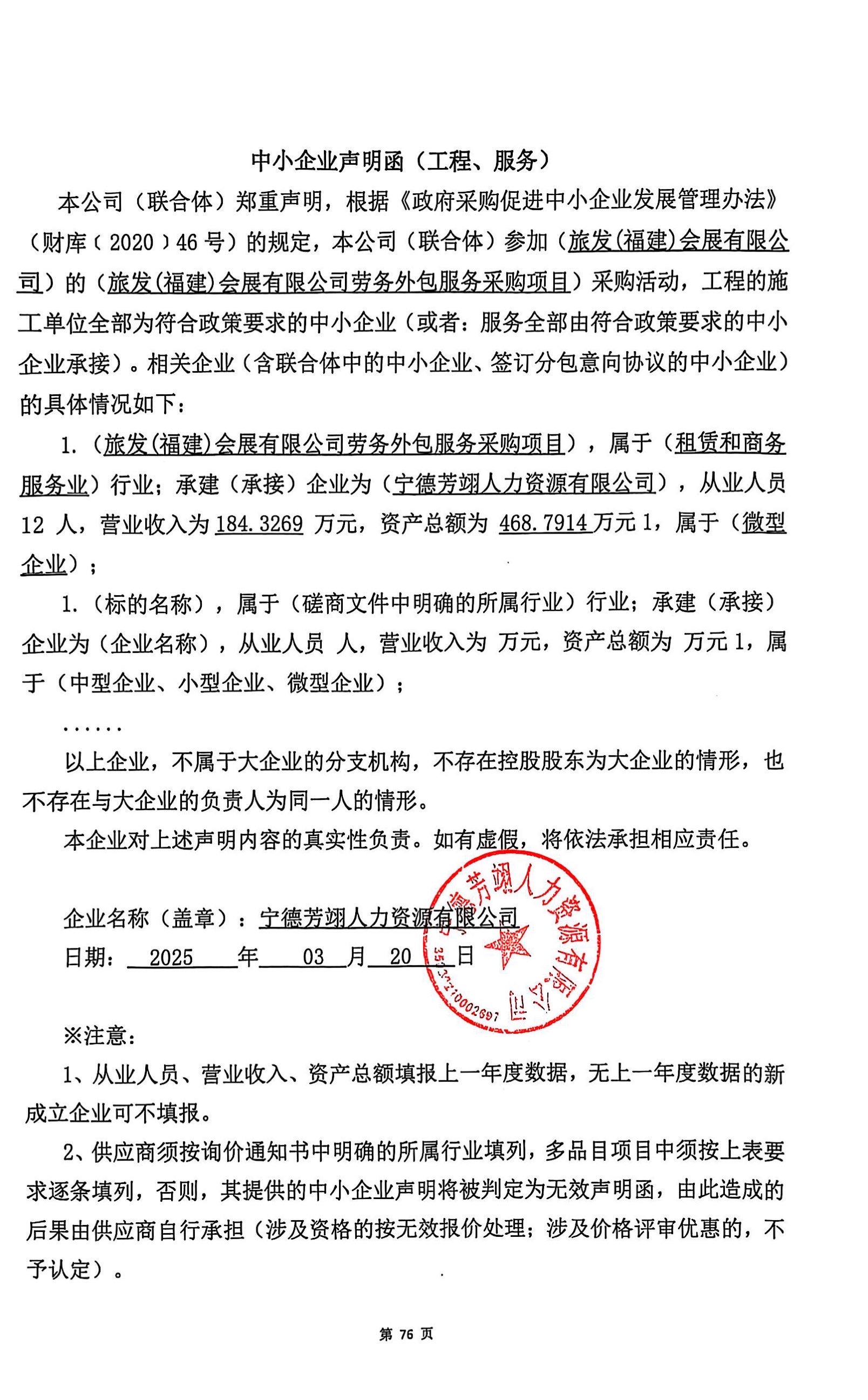 二、項(xiàng)目名稱:旅發(fā)(福建)會展有限公司勞務(wù)外包服務(wù)采購項(xiàng)目