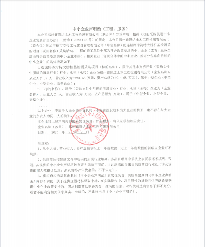 服務(wù)類(福州鑫隆達(dá)土木工程檢測(cè)有限公司)